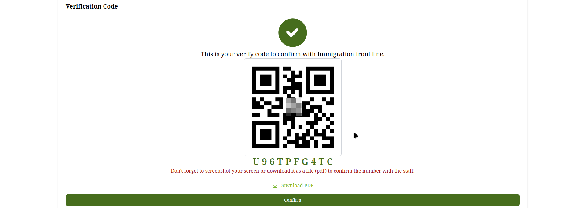 ¤ Ce QR Code est à présenter (format papier ou depuis l'écran de votre téléphone) en même temps que votre passeport au poste de contrôle